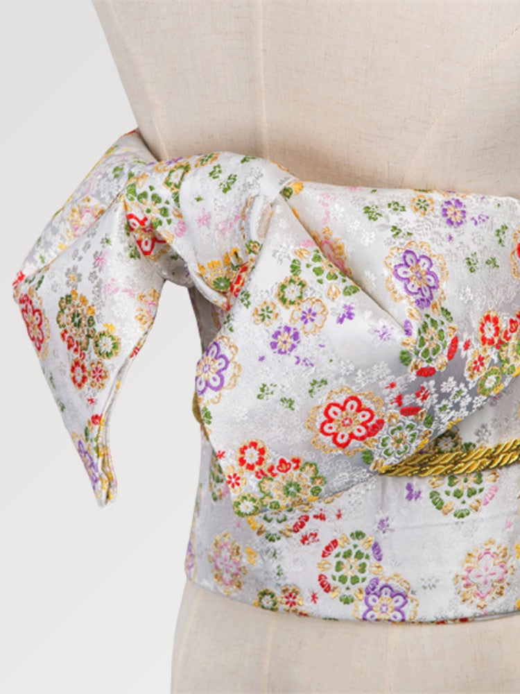 Ceinture obi blanche au motif fleuri et légèrement satiné pour votre kimono
