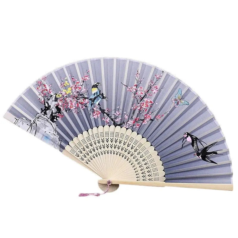 Éventail en bambou japonais et au motif fleur de ce iriser et hirondelles