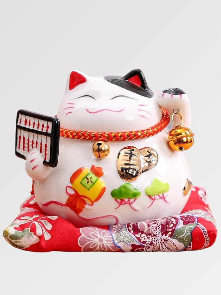 Ce célèbre Maneki Neko Blanc est peint de façon traditionnel, si vous l'offrez à un de vos amis, il lui apportera fortune, bonheur et grande prospérité.