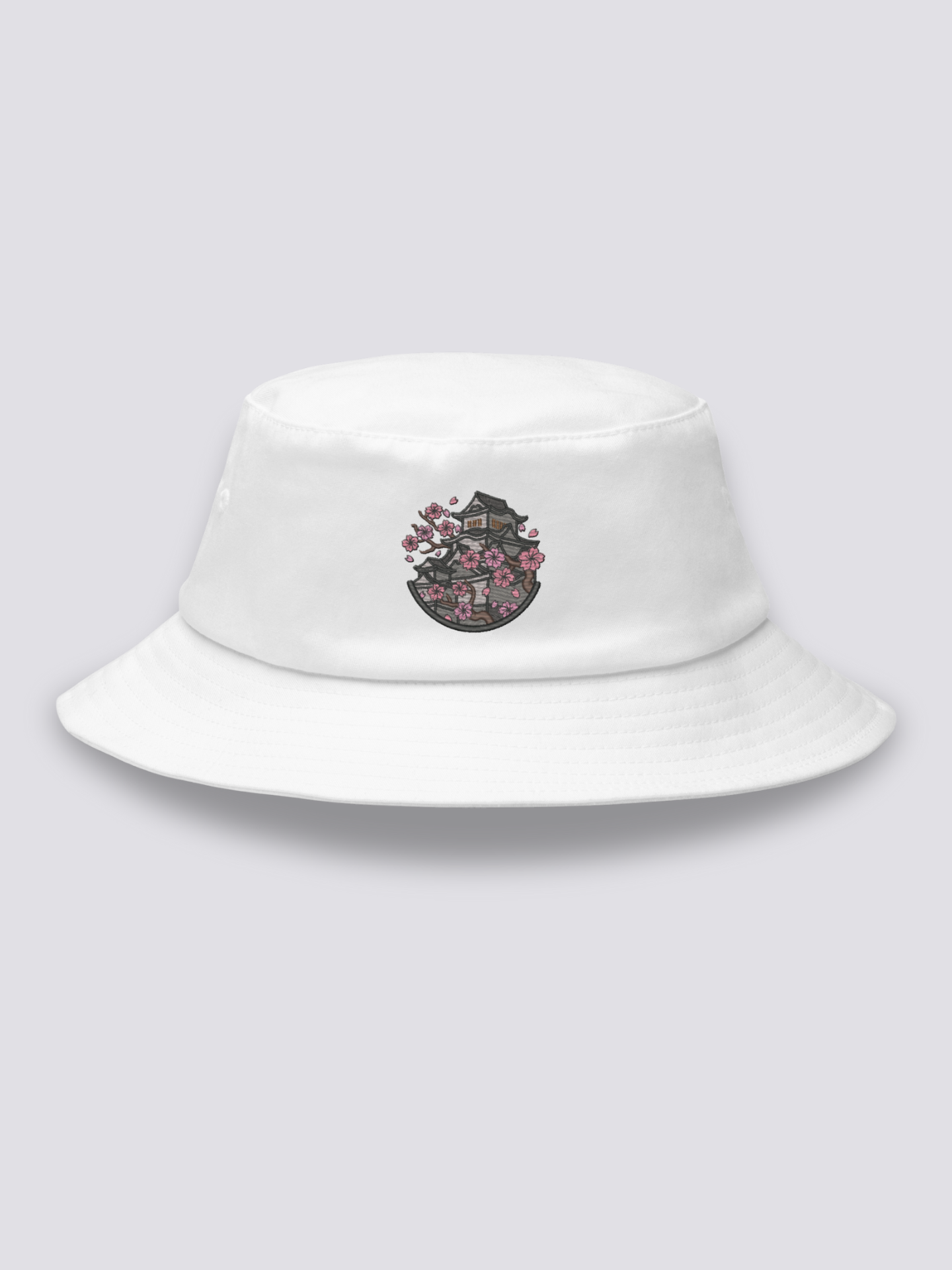 Ce bob japonais rend hommage au château de Himeji, monument emblématique du Japon, entouré ici de fleurs de cerisier brodées avec soin. Son design élégant marie parfaitement tradition nippone et modernité streetwear. Idéal pour affirmer ton style tout en te protégeant du soleil, il incarne la grâce et la sérénité d’un Japon éternel, même au cœur de la ville.
