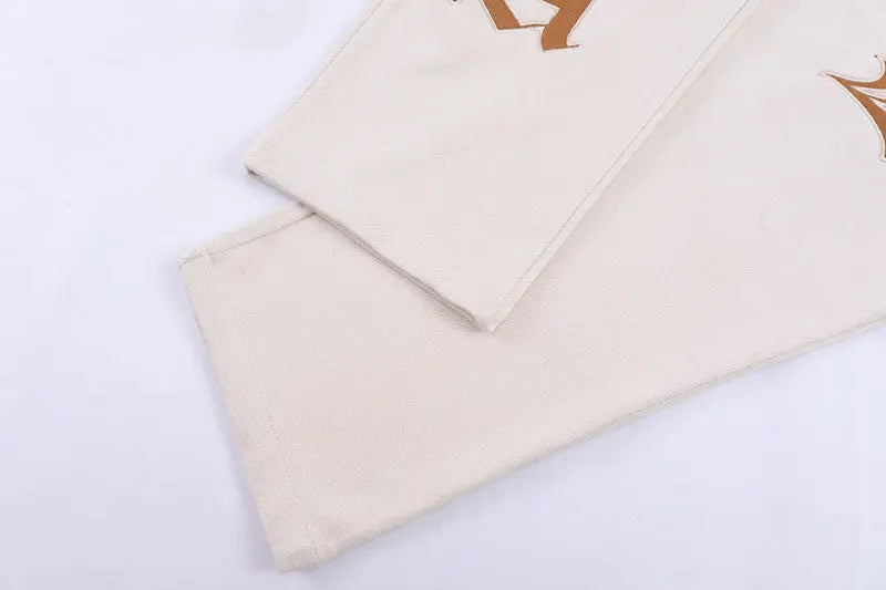 Le look urbain n'a rien à envier au streetwear, portez sans modération le jean rétro aux lettres brodées pour partir en soirée avec une élégance sans égale !
